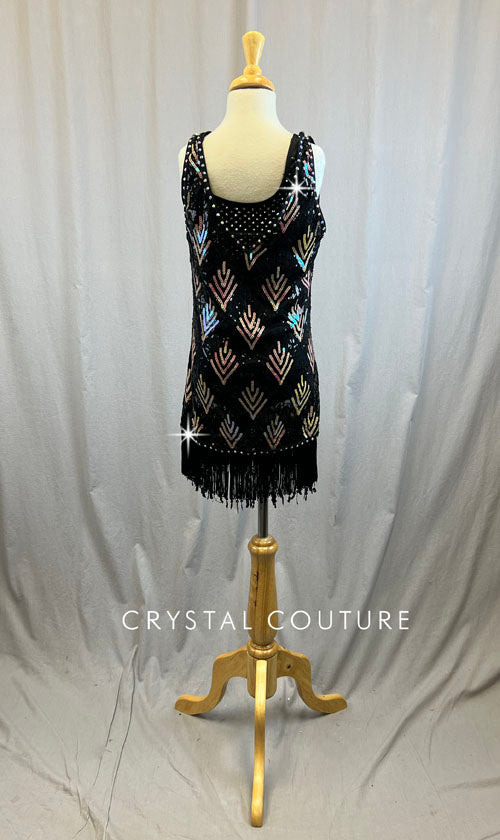Black and light pink AB sequin flapper dress -Rhinestones