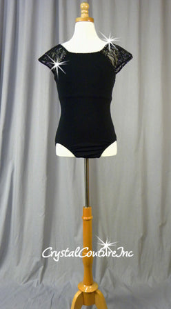 Black Leotard with Lace Sleeves - Swarovski Rhinestones