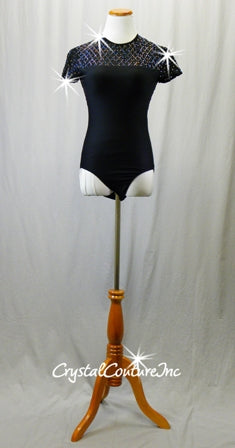 Black Leotard with Open Back and 2 Optional Black Skirts - Rhinestones