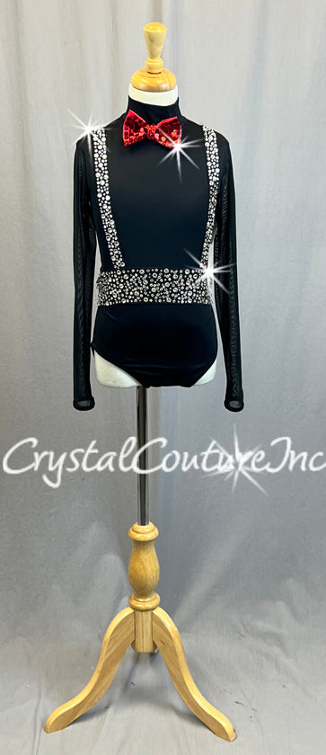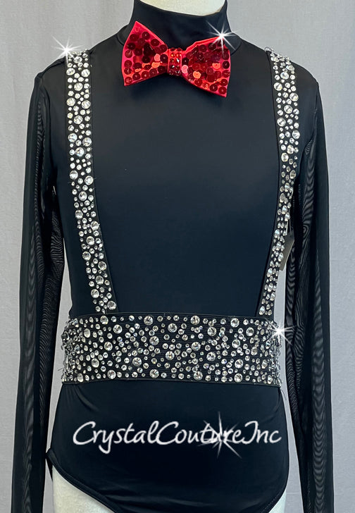 Black Leotard with Red Bowtie and Rhinestoned Suspenders