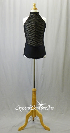Custom made Black textured lace and lycra leotard, lined with Nude lycra. Costume feature mock-neckline and slightly open back.
