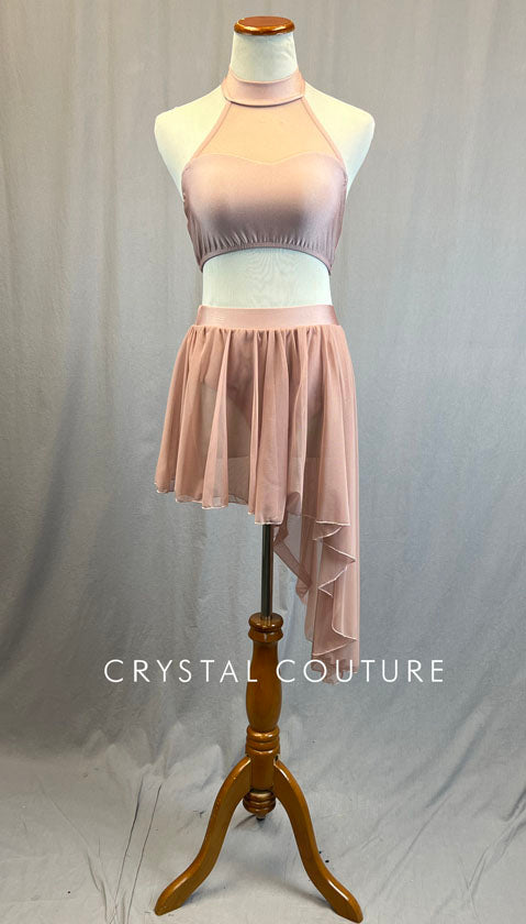 Blush Pink Halter Two Piece with Asymmetrical Mesh Skirt