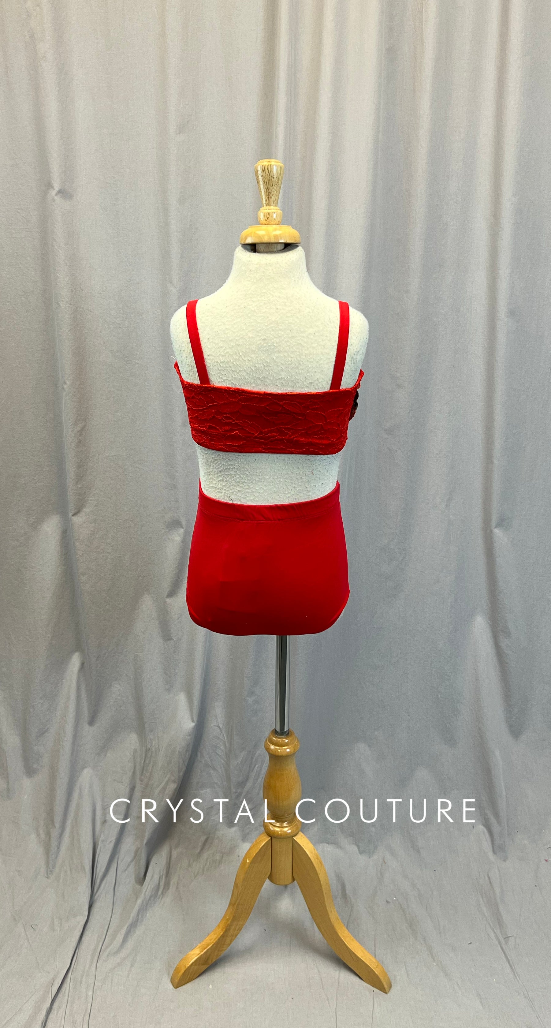 *Brand New* Red Lace Floral Bra Top and Brief Set -Rhinestones, Appliques