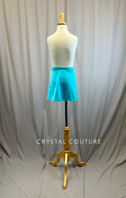 New, never worn. Two tone aqua lycra skirt with hot pink metallic accent. Briefs attached under skirt for coverage.