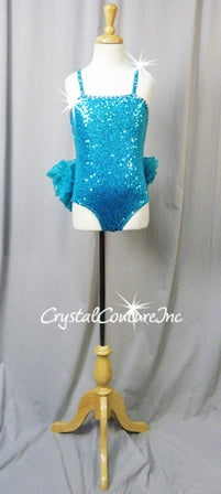 Bright Teal Blue Zsa Zsa Sequin Leotard with Tulle Ruffle Back Skirt - Swarovski Rhinestones