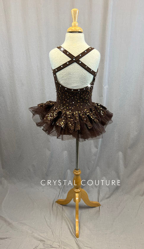 Brown Sequin Mini Tutu Dress - Rhinestones