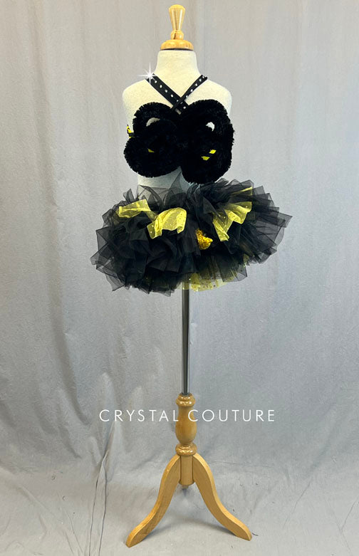 Custom Black & Yellow Bumble Bee Two Piece with Tulle Bustle - Rhinestones