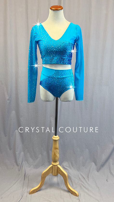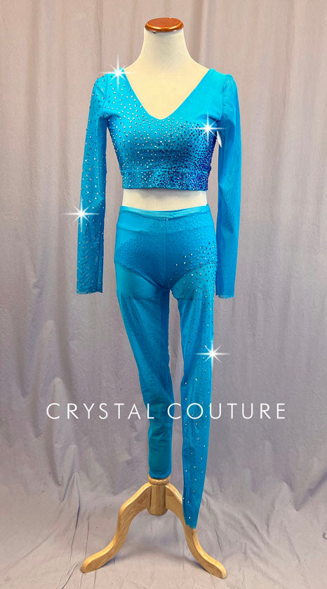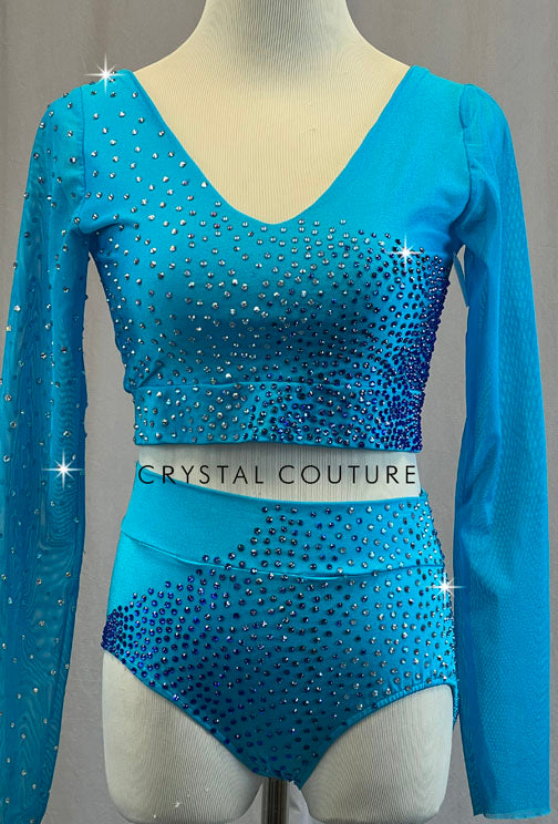 Custom Bright Blue Three Piece with Mesh - Rhinestones