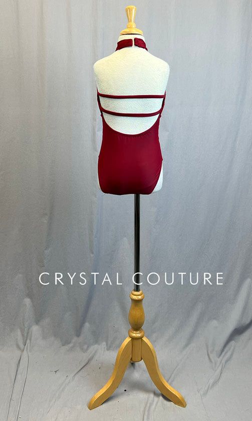 Custom Dark Red Mock Neck Leotard with Lace Cutouts - Rhinestones