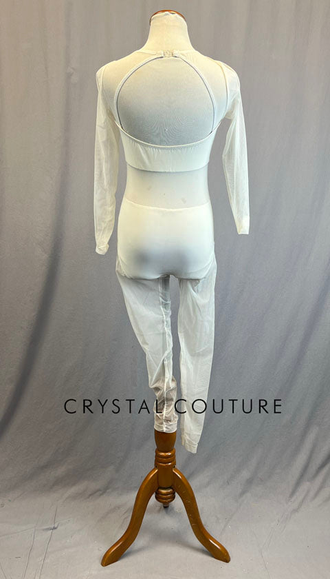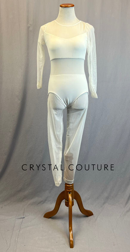 Custom Ivory Unitard with Stretchy Mesh Sleeves, Bodice, and Legs.