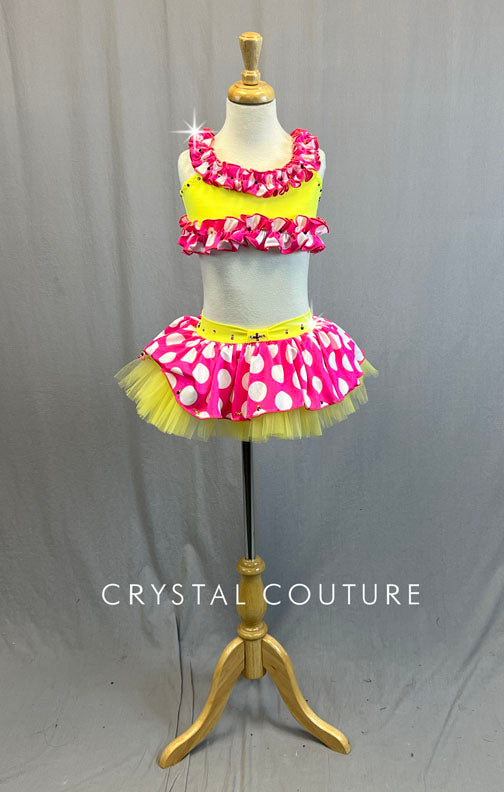 Custom Lemon Yellow & Hot Pink Two Piece with Polka Dots and Crinoline - Rhinestones