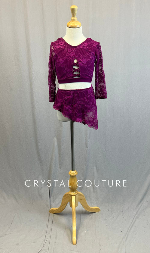 Custom Magenta Lace Two Piece with Asymmetrical Mini Skirt