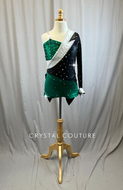 Custom Metallic Green and Black Tuxedo Style Biketard -Rhinestones and Accessories
