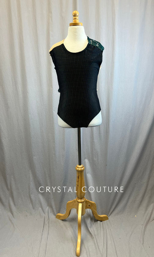 Custom Nude and Black Jersey Leotard with Metallic Evergreen Lace Strap