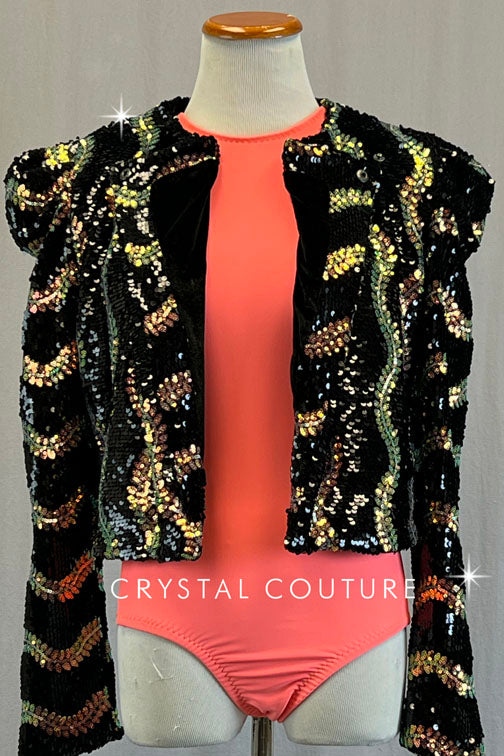 Custom Peach Tank Leotard with Black and Iridescent Sequined Blazer
