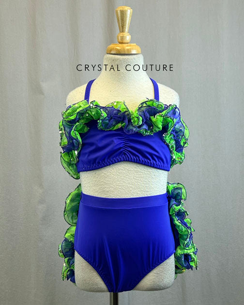 Custom Purple and Green Ruffle Two Piece with Sequin
