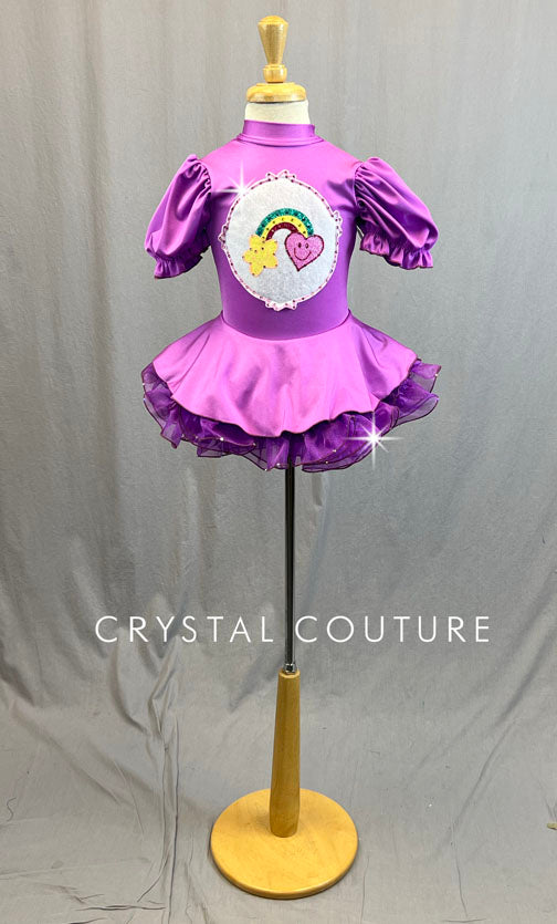 Custom Purple Care Bear Puff Sleeve Dress with Circle Skirt and Crinoline - Rhinestones