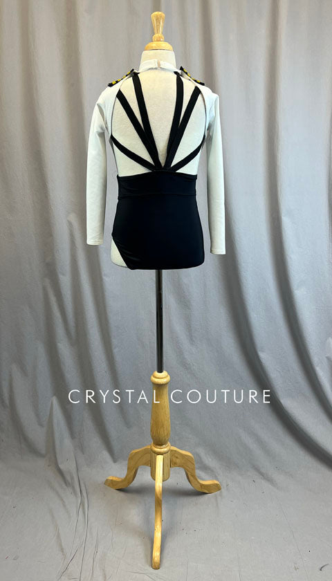 Custom White and Black Flight Attendant Inspired Leotard with Strappy Back - Rhinestones
