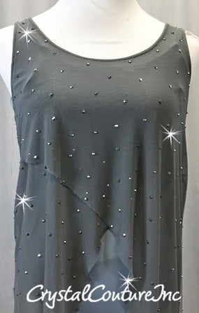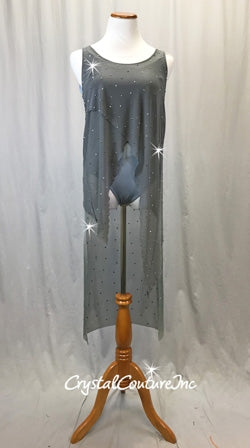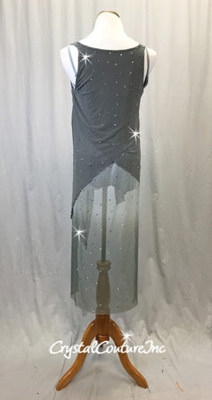 Gray Mesh Asymmetrical Tunic Dress w/Grey Leotard - Swarovski Rhinestones