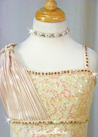 Ivory & Light Pink Dress with Attached Booty Shorts - Swarovski Rhinestones