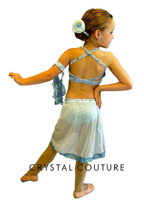 Custom Light Blue Lycra & Lace Top with Trunk - Swarovski Rhinestones