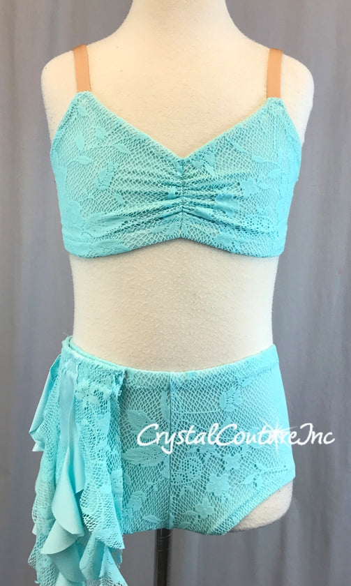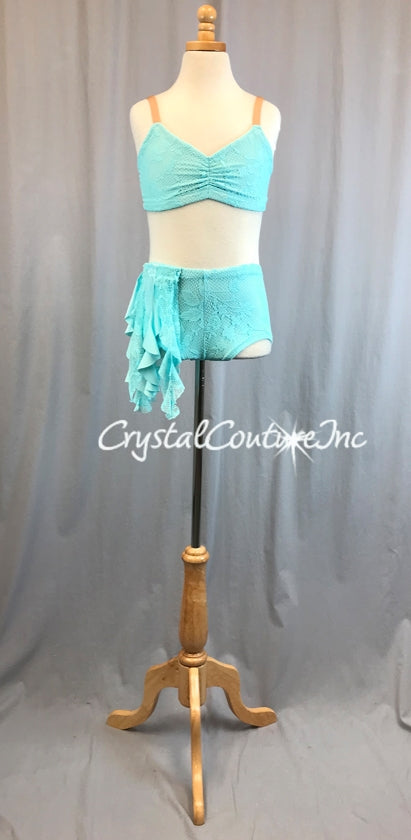 Lt Teal Blue Lace and Mesh Bra-Top & Booty Short/Skirt