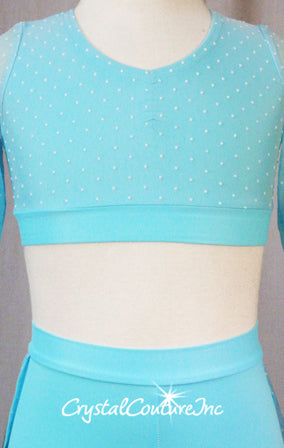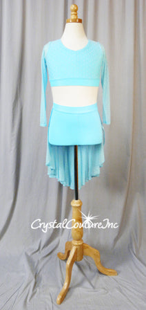 Lt Turquoise Blue 2 Piece Crop Top and Booty Shorts w/Sheer Back Skirt