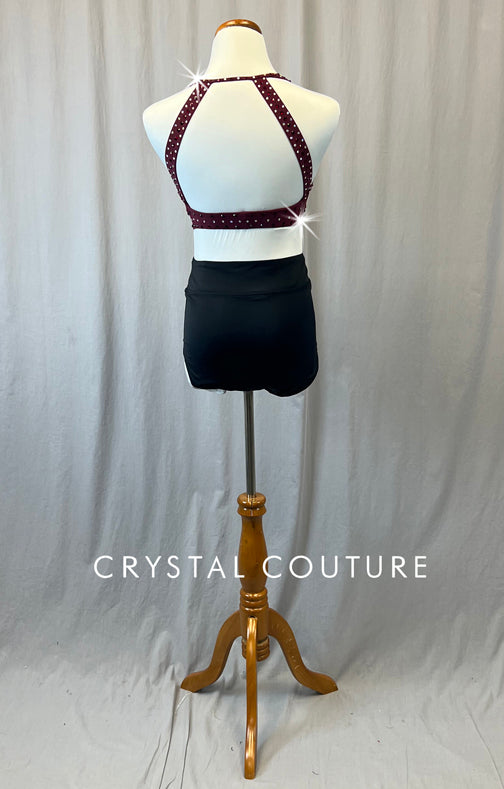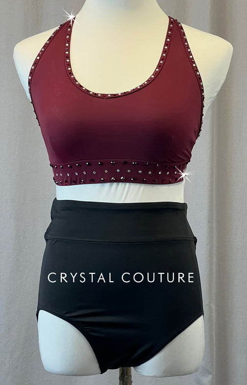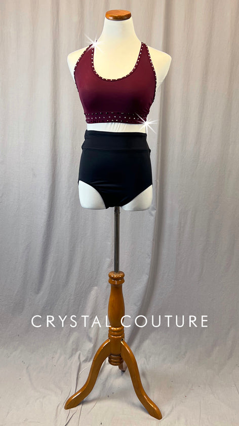 Maroon Open Back Top & Black Trunks - Rhinestones
