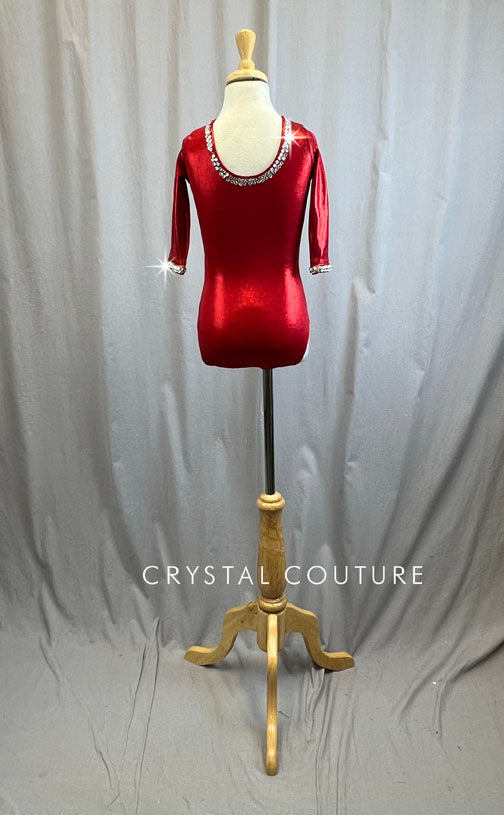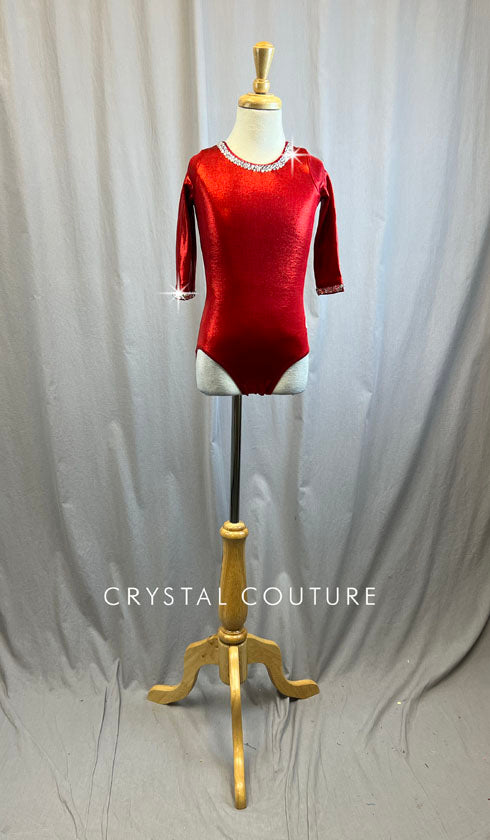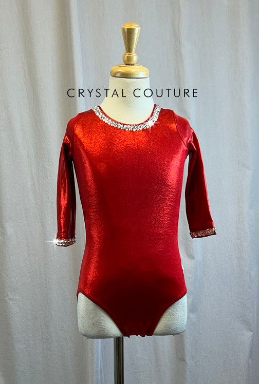 Metallic Red 3/4 Length Sleeve leotard -Rhinestones and Hair Piece
