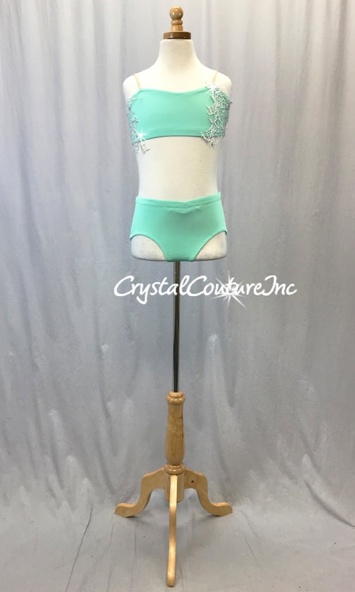 Mint Green Bandeau Top and Trunk White Appliques - Swarovski Rhinestones