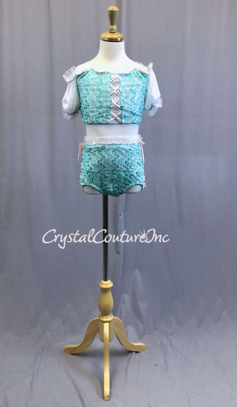 Mint, White, and Pastel Pink Two Piece with Lace and Rhinestones