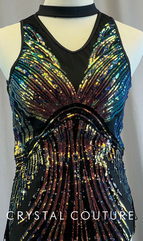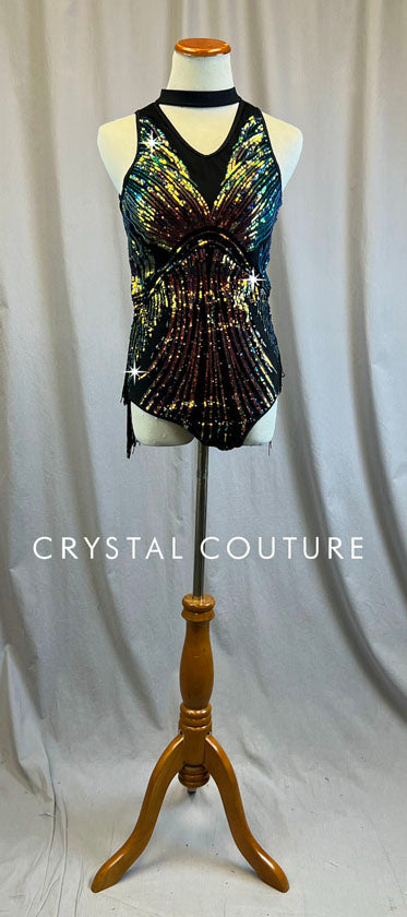 Multi Color Sequin & Black Leotard with Fringe Back Skirt