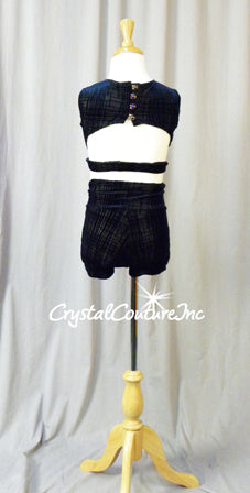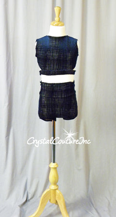 Navy Blue Patterned Velour 2 Pc Crop Top and Booty Shorts