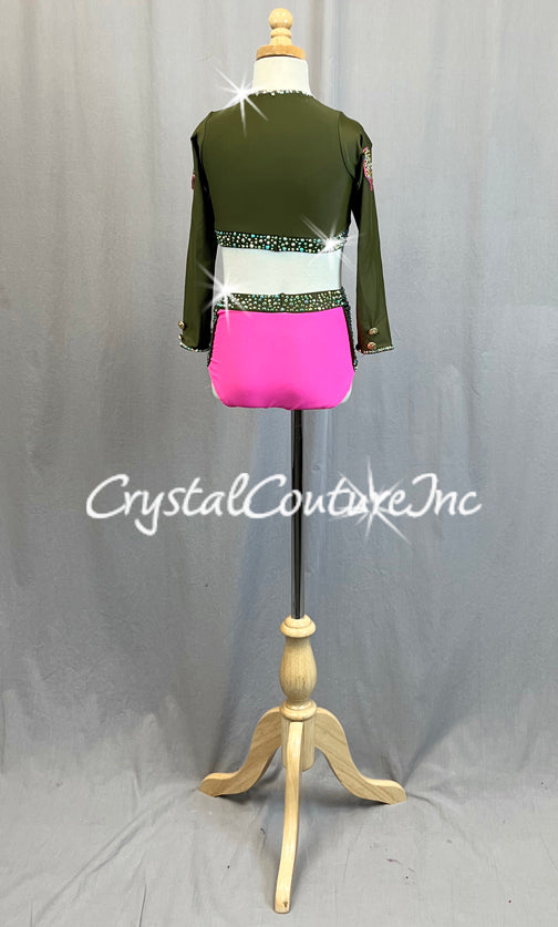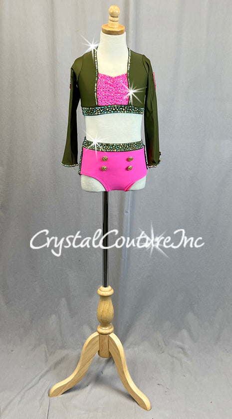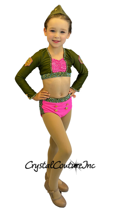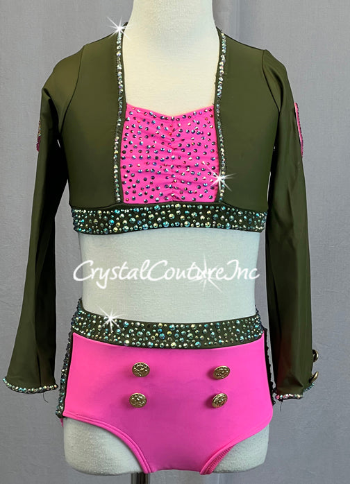 Olive Green and Neon Pink Soldier Two Piece - Rhinestones