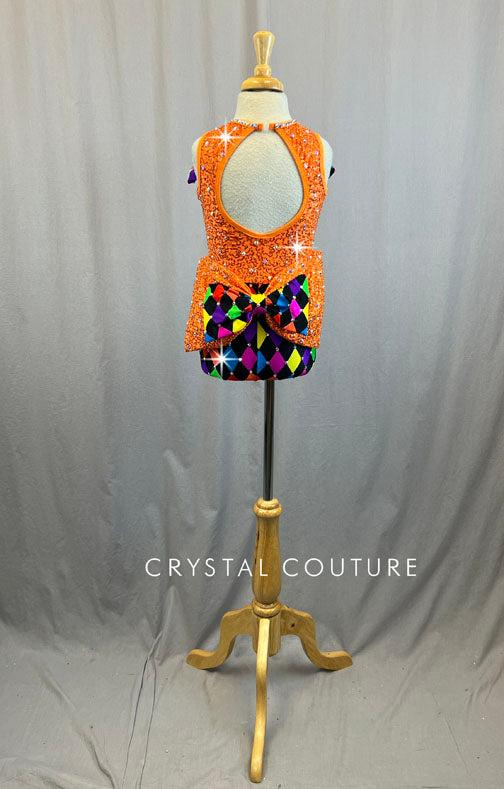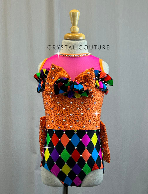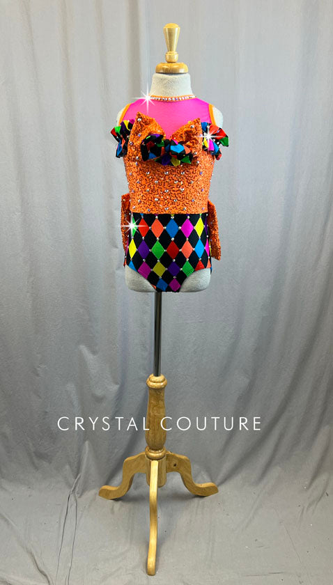 Orange Zsa Zsa and Multicolored Checkered Leotard - Rhinestones