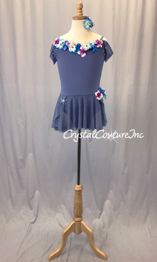 Periwinkle Blue Skirted Leotard with Flowers -Swarovski Rhinestones