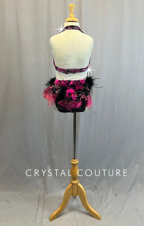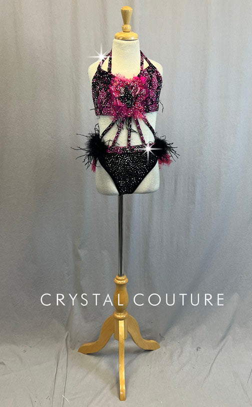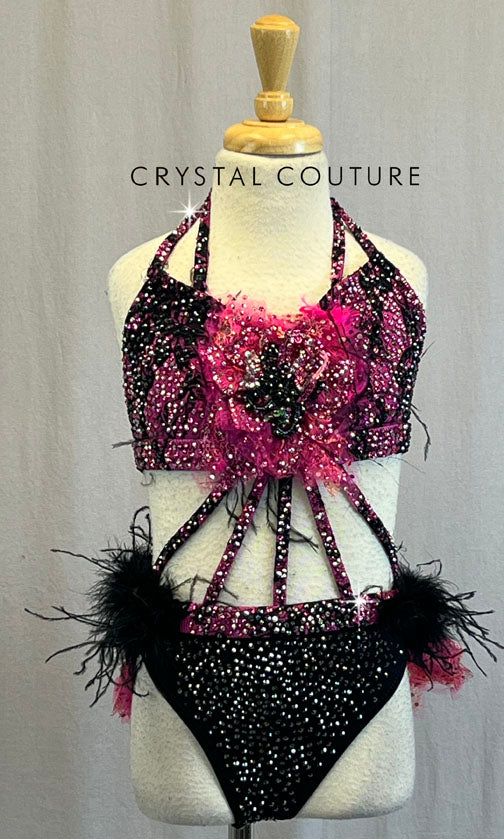 Pink & Black Connected Two Piece with Tulle and Feather Back Bustle - Rhinestones