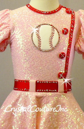 Custom Pink Zsa Zsa Sequin Dress with Red trim & Baseball Patch - Swarovski Rhinestones