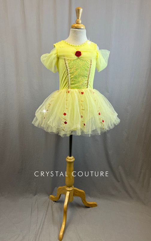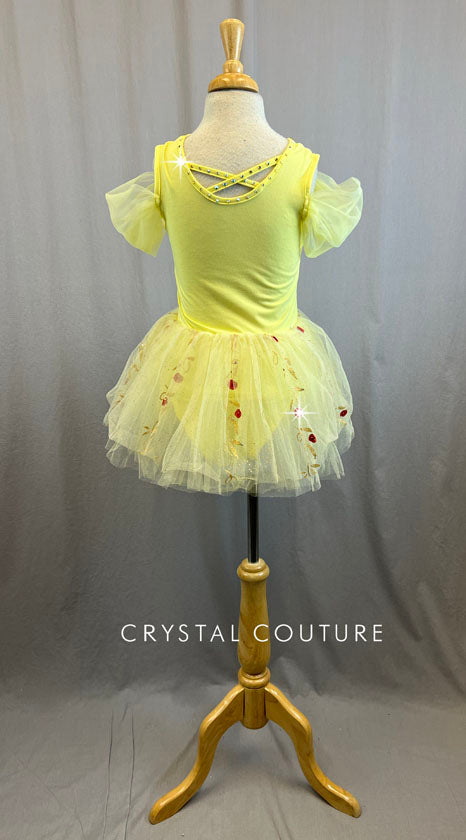 Cotton Princess dress with satin and tulle skirt. Snap crotch leotard for pull over bodice. Rhinestone details in coordinating colors for a perfect stage look!
