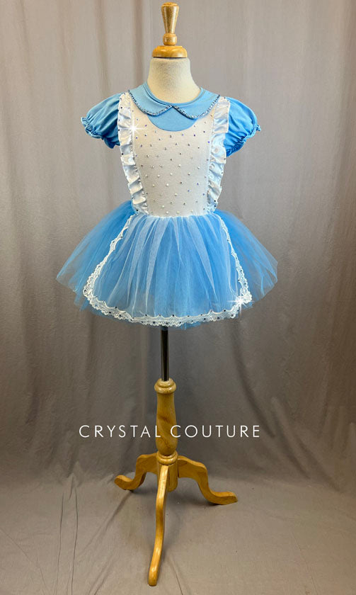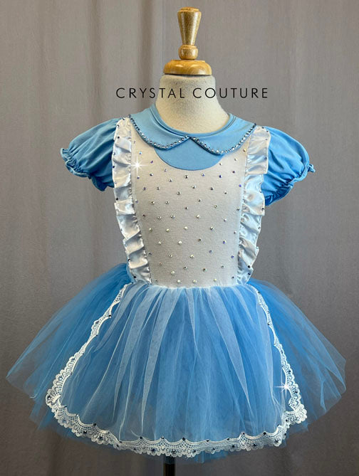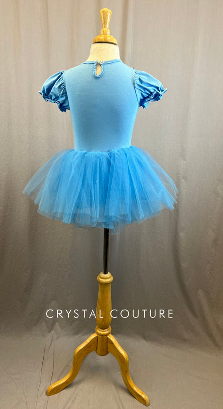 Cotton Princess dress with satin and tulle skirt. Snap crotch leotard for pull over bodice. Rhinestone details in coordinating colors for a perfect stage look!