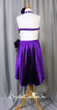 Purple 2-Piece Bra Top and Trunks/Back Skirt with Flowers and Applique