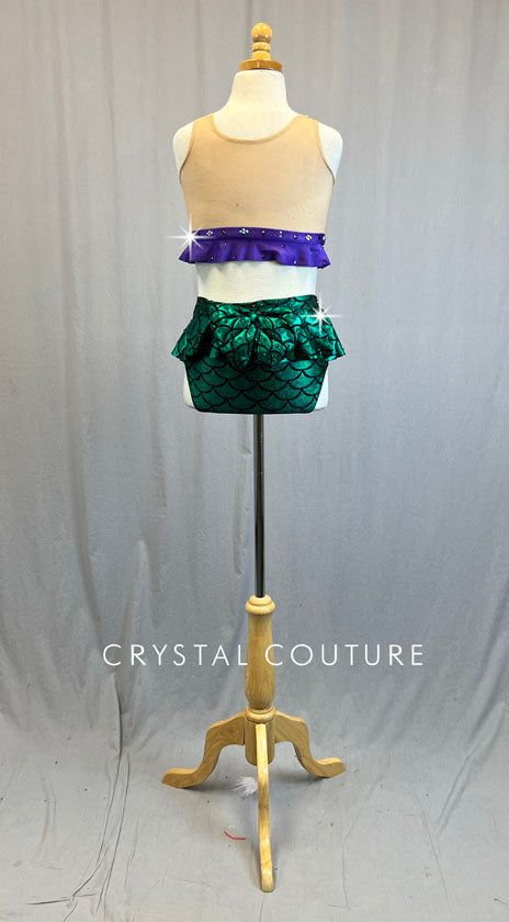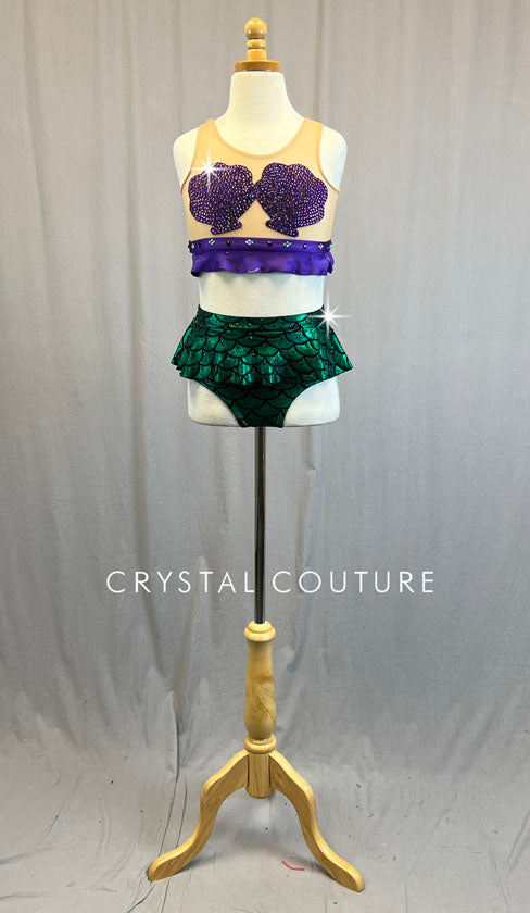 Custom Purple & Green Mermaid Two Piece - Rhinestones