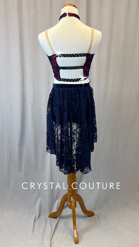 Red & Navy Lace Two Piece with Half Skirt - Appliques & Rhinestones