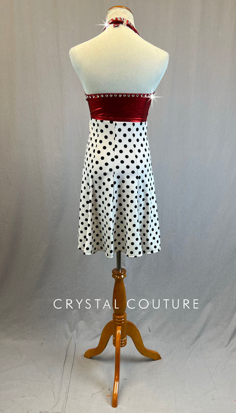 Red, Black & White Polka Dot Halter Dress - Rhinestones