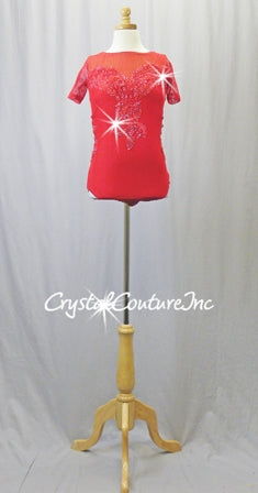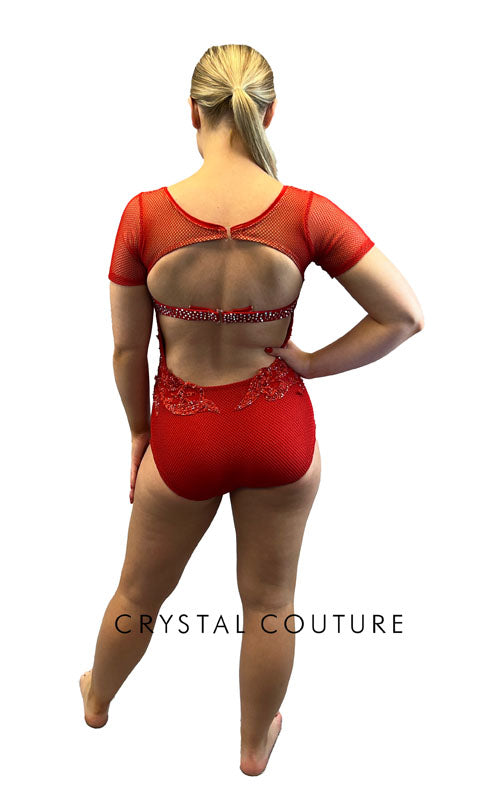 Custom Red Lycra & Open-Net Leotard - Appliques & Swarovski Rhinestones