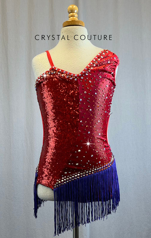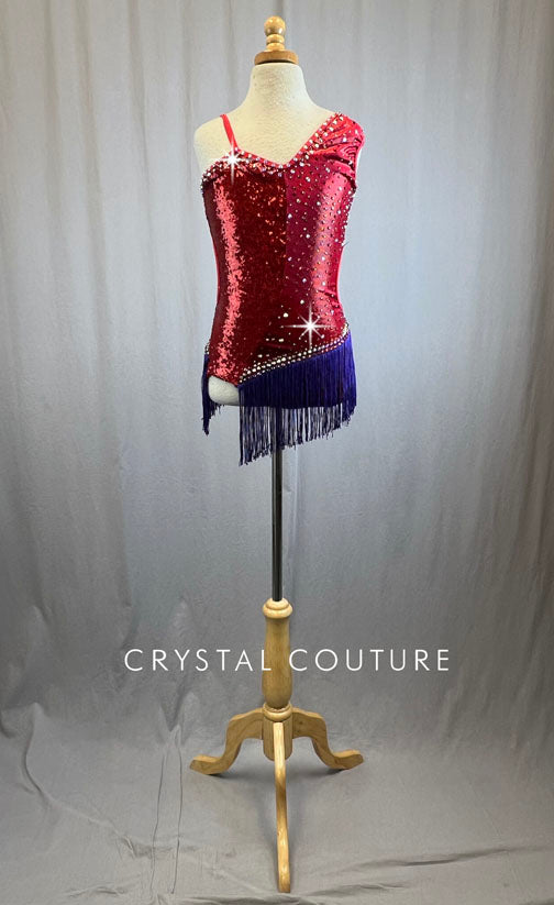 Red Sequin Lycra Leotard with Purple Fringe
