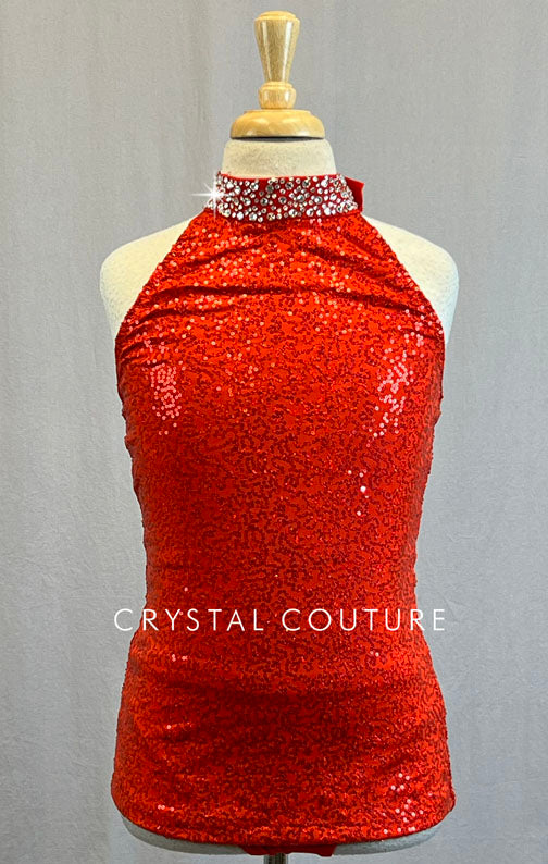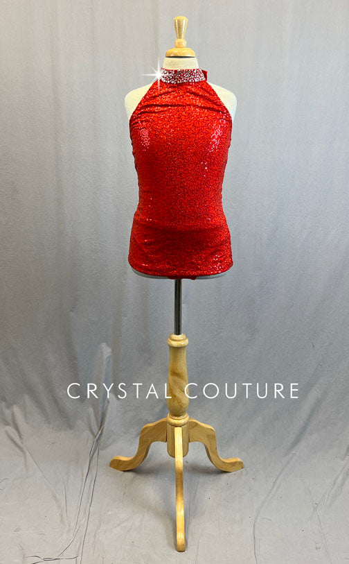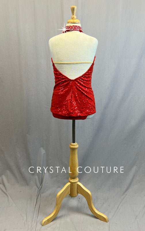 Red Zsa Zsa Halter Top with Trunks - Rhinestones