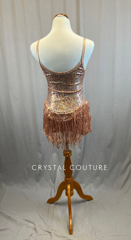 Rose Gold Zsa Zsa Leotard with Fringe Skirt - Rhinestones