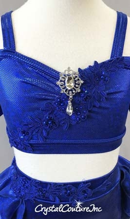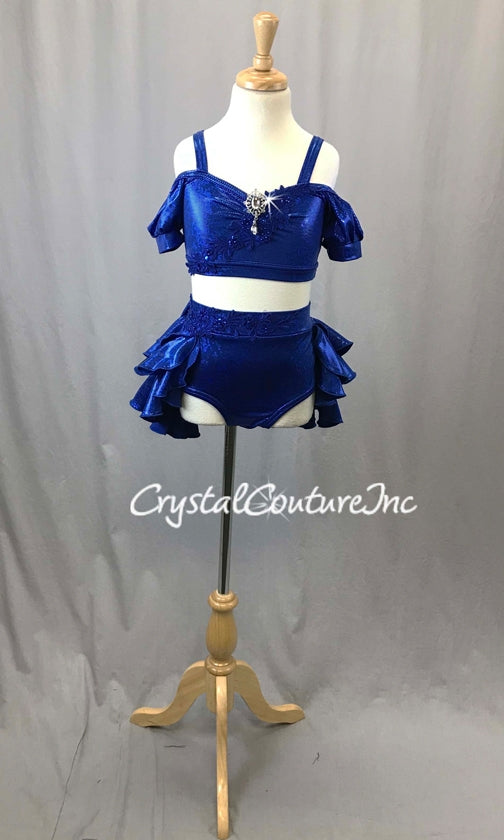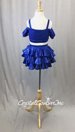Royal Blue Metallic Lycra 2 Piece Crop Top and Briefs/Tiered Back Skirt