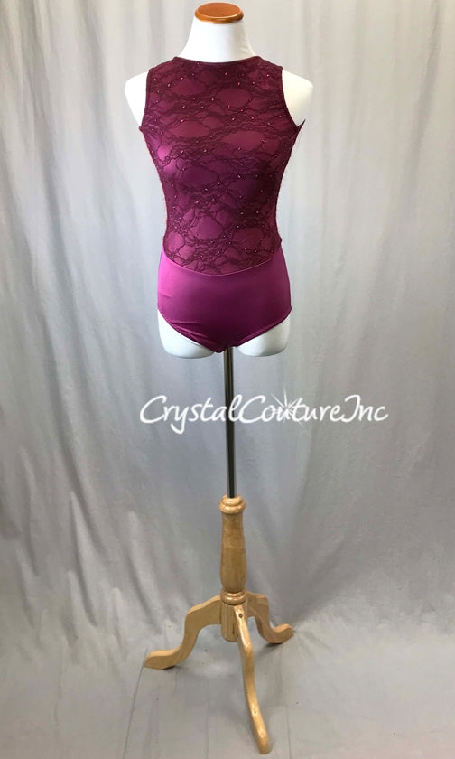 Ruby Floral Lace and Lycra Leotard with Open Back - Swarovski Rhinestones
